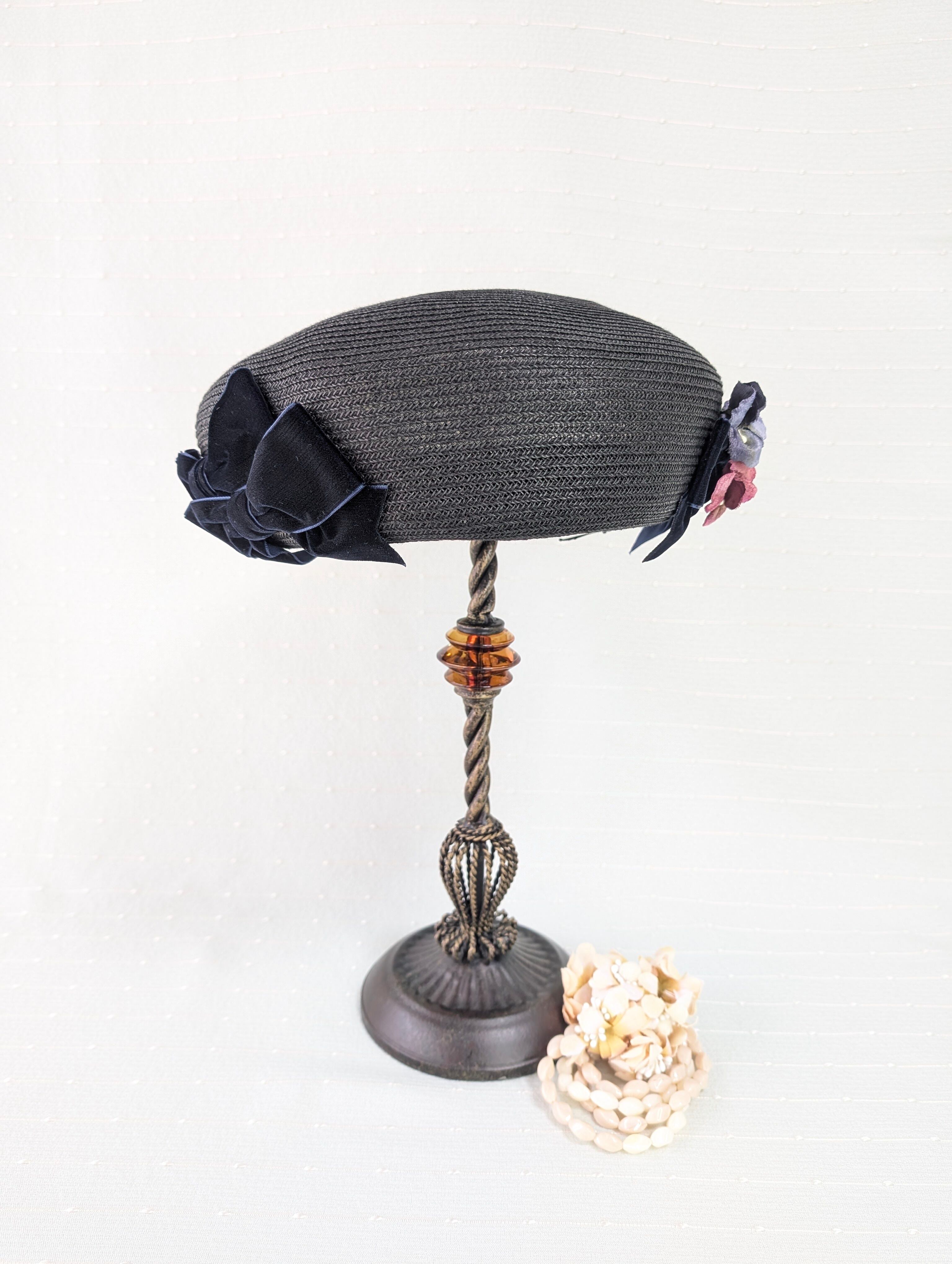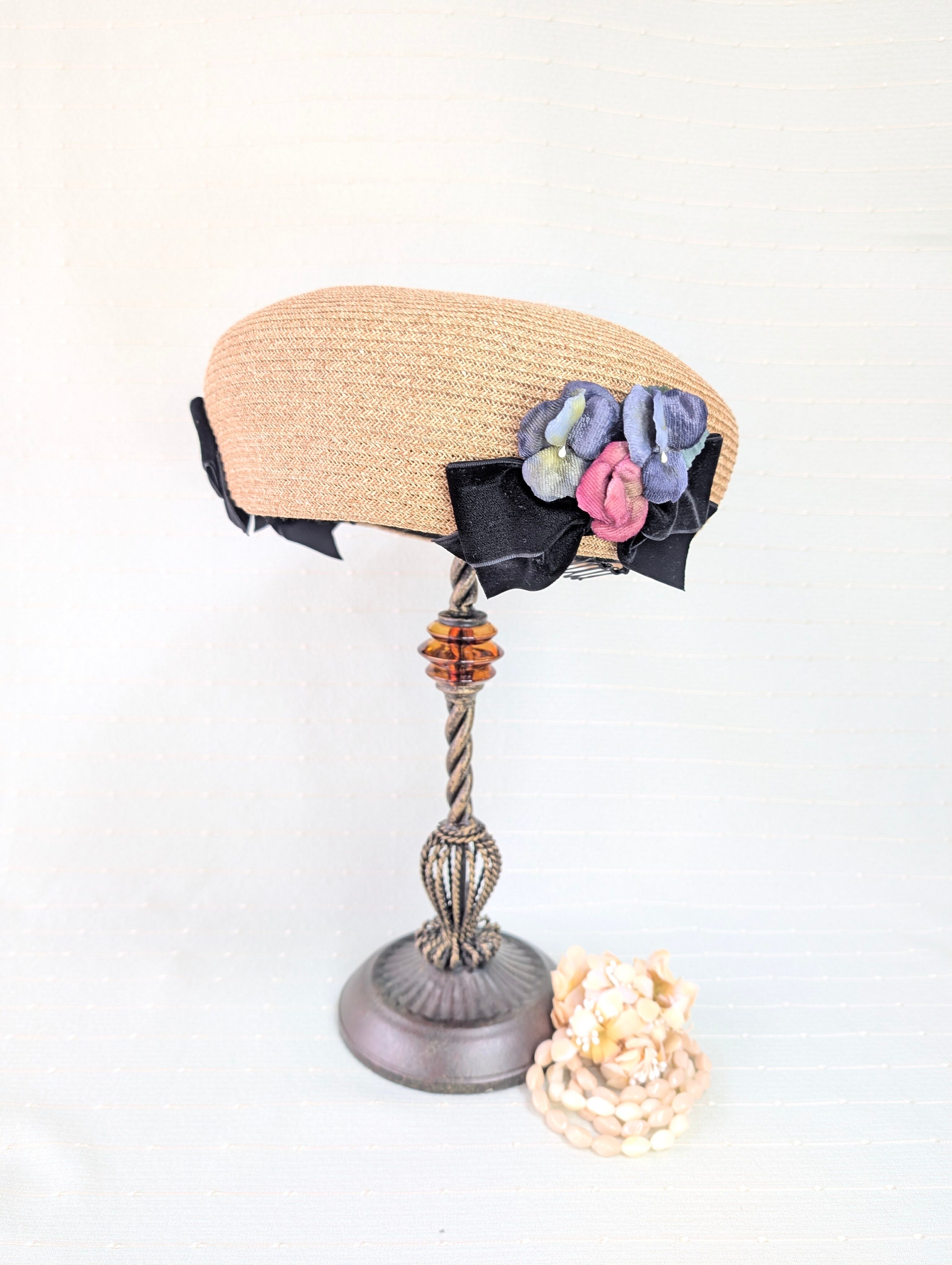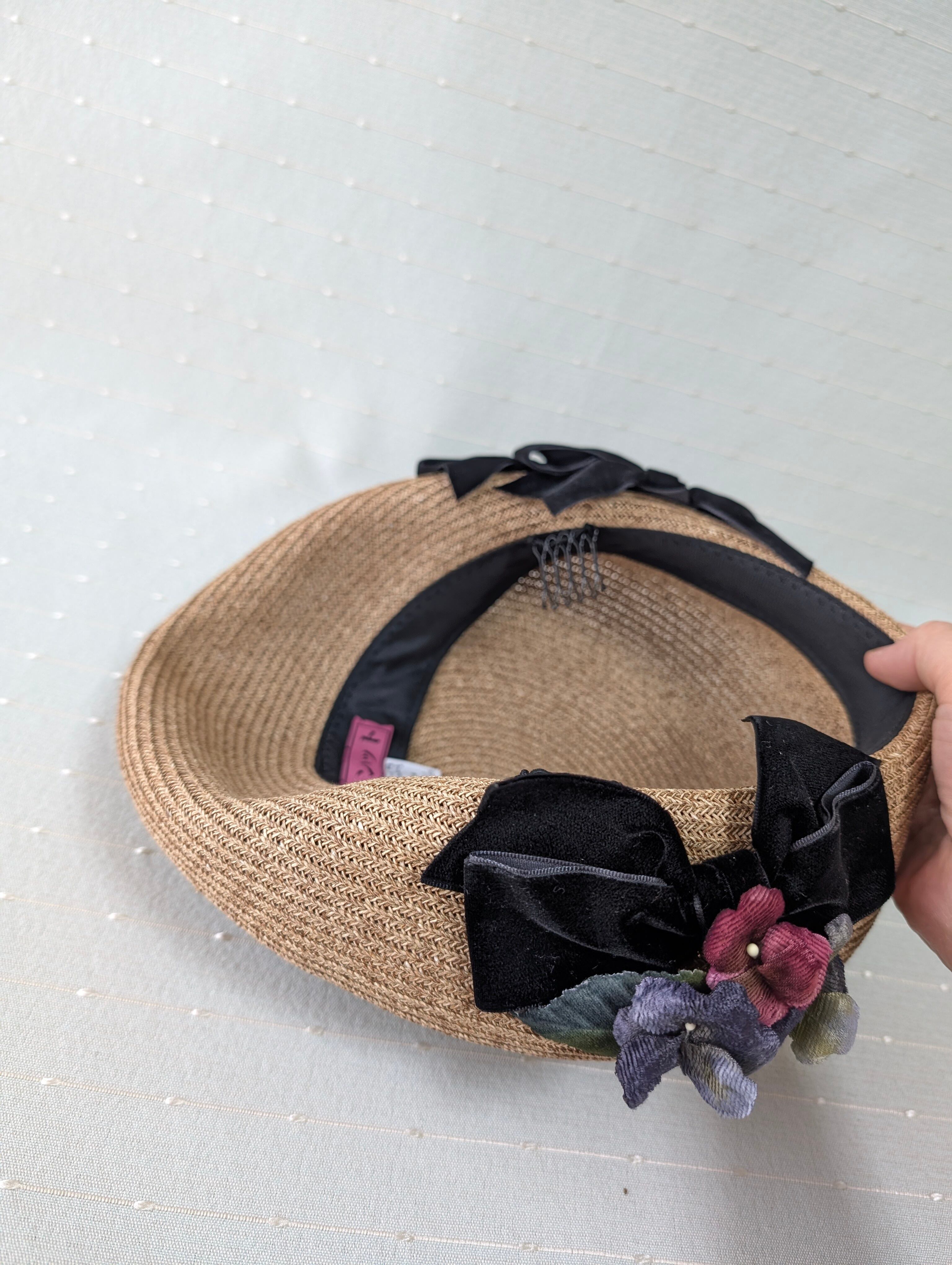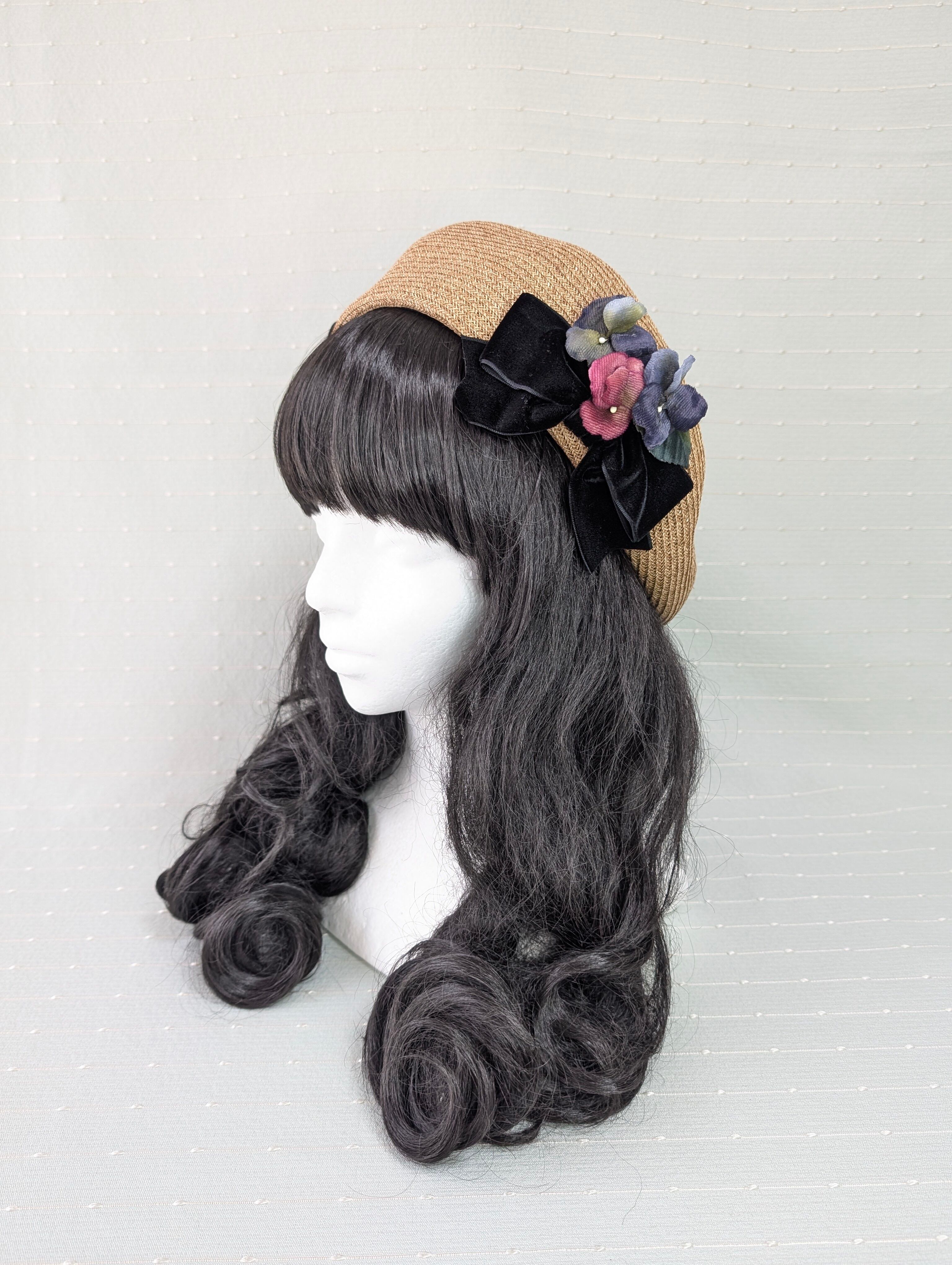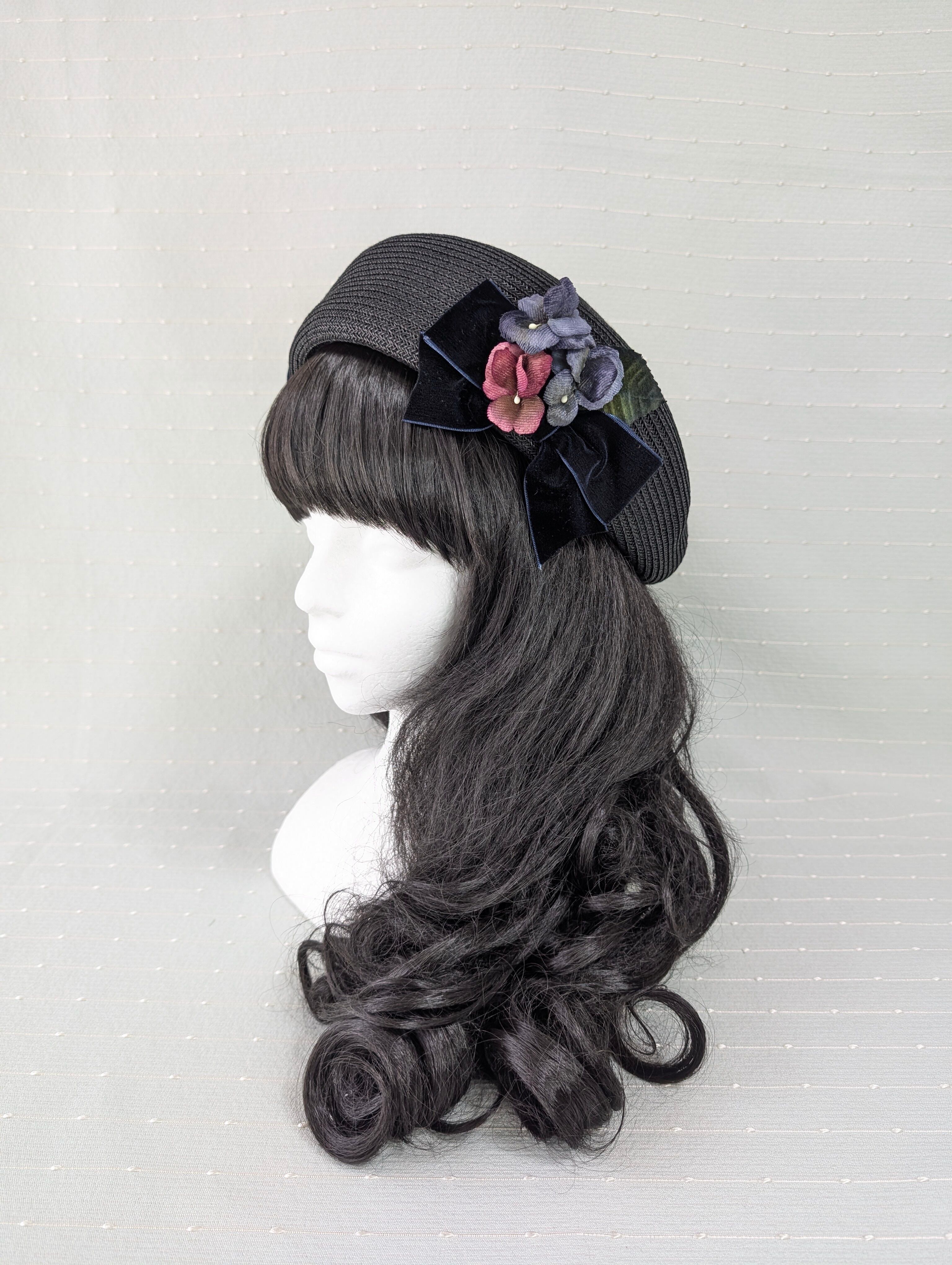 上質なブレードハットを生産している日本の老舗の専門工場に発注して生産したベレー帽。とてもかぶりやすいです。リボンやパンジーのトリミングデザインはアノンハットのオリジナルです。