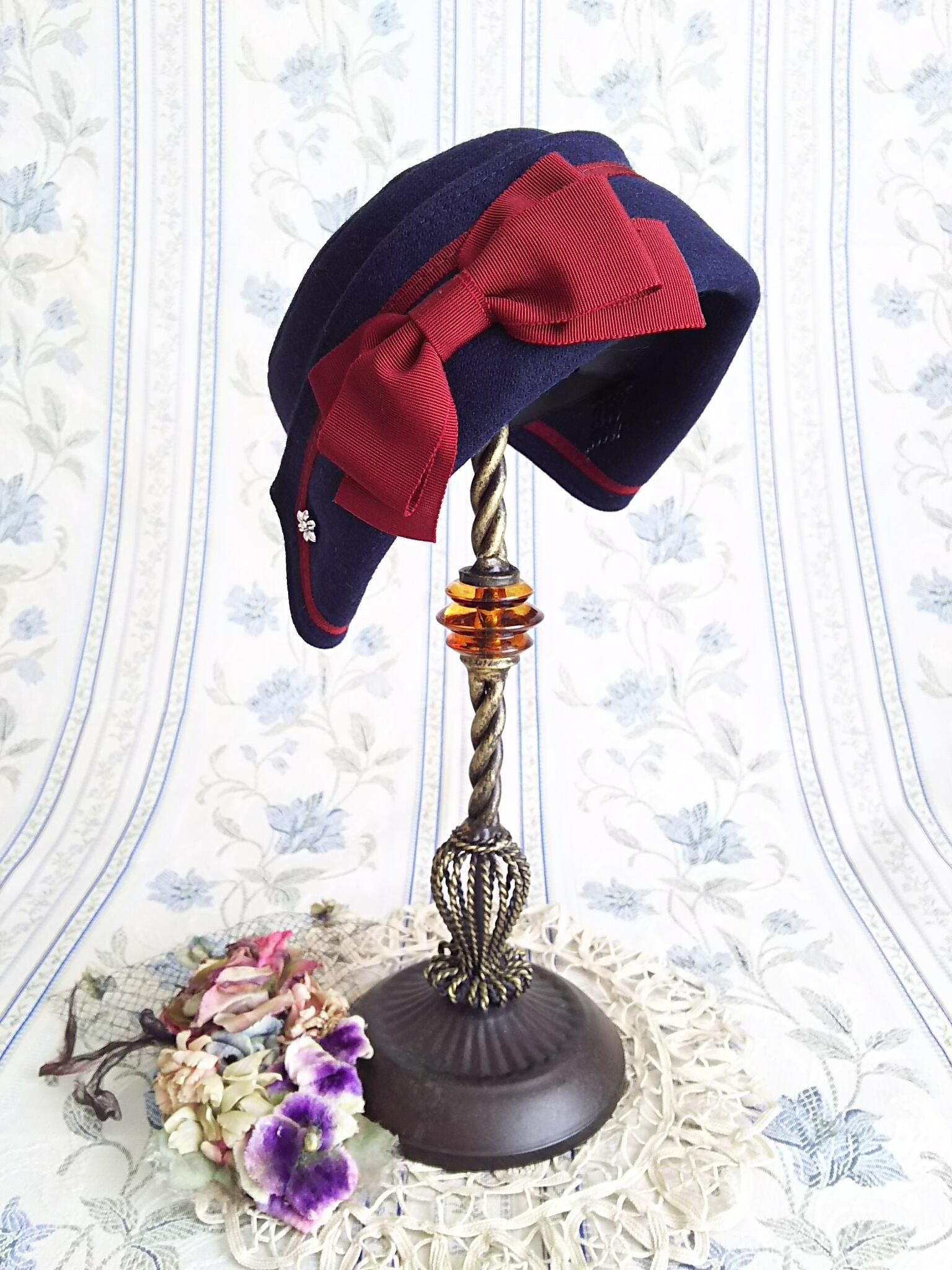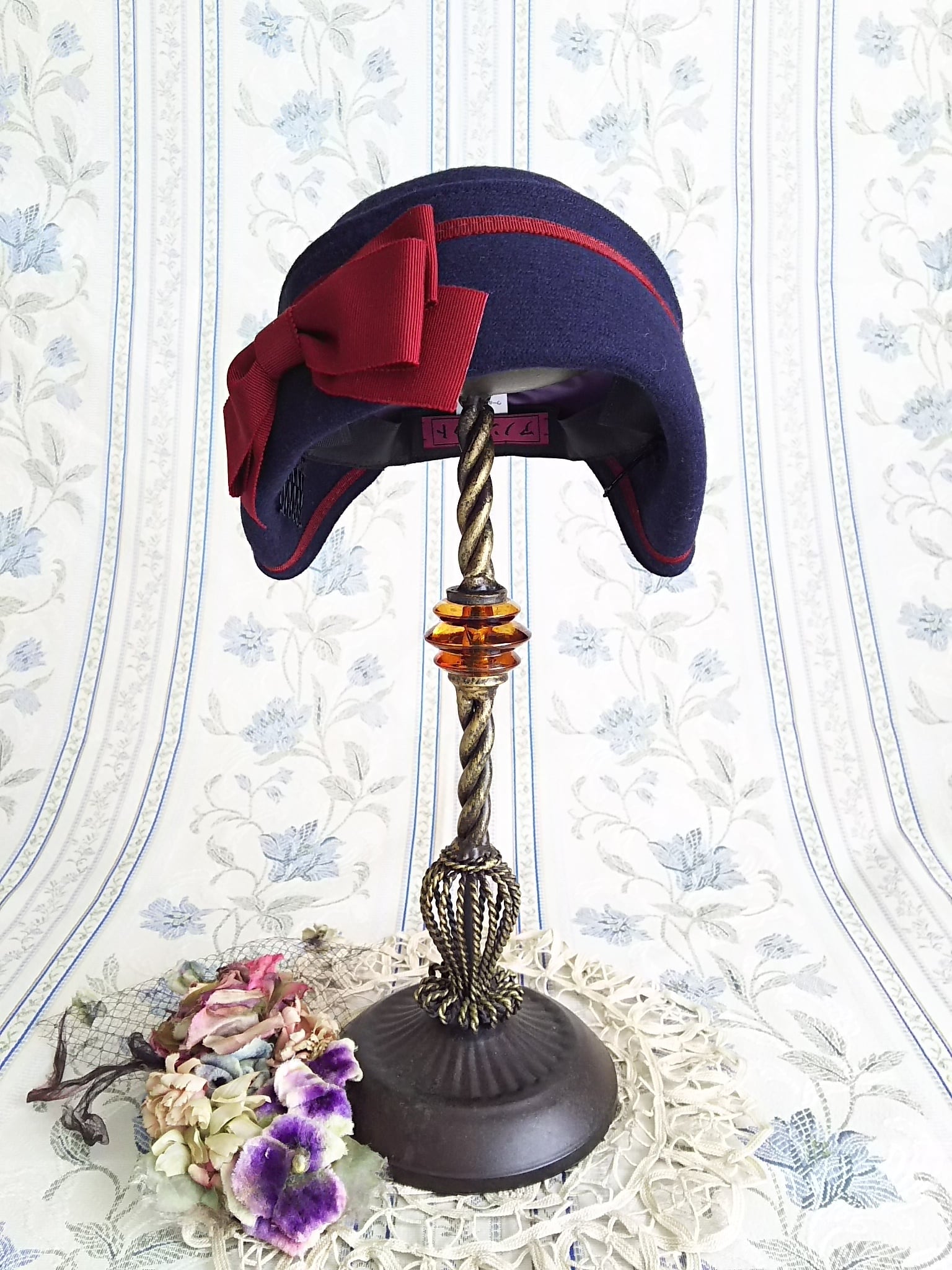 1920年代に流行した、頭を包み込むような釣り鐘型の帽子(ギャッツビークロシェ)をイメージして、大きなリボンを付けて現代風なアレンジを加えた帽子です。