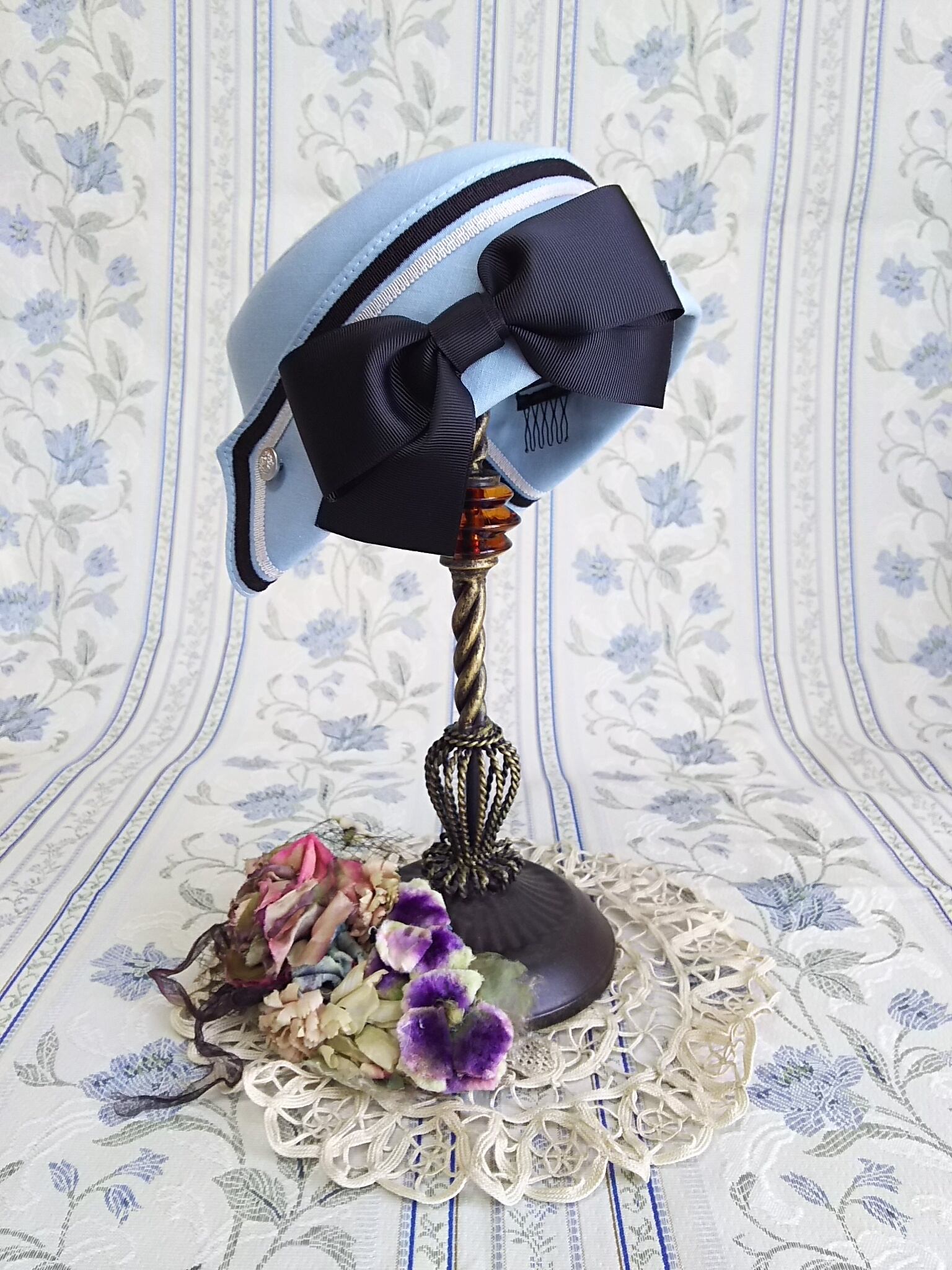 1920年代に流行した、頭を包み込むような釣り鐘型の帽子(ギャッツビークロシェ)をイメージして、大きなリボンを付けて現代風なアレンジを加えた帽子です。