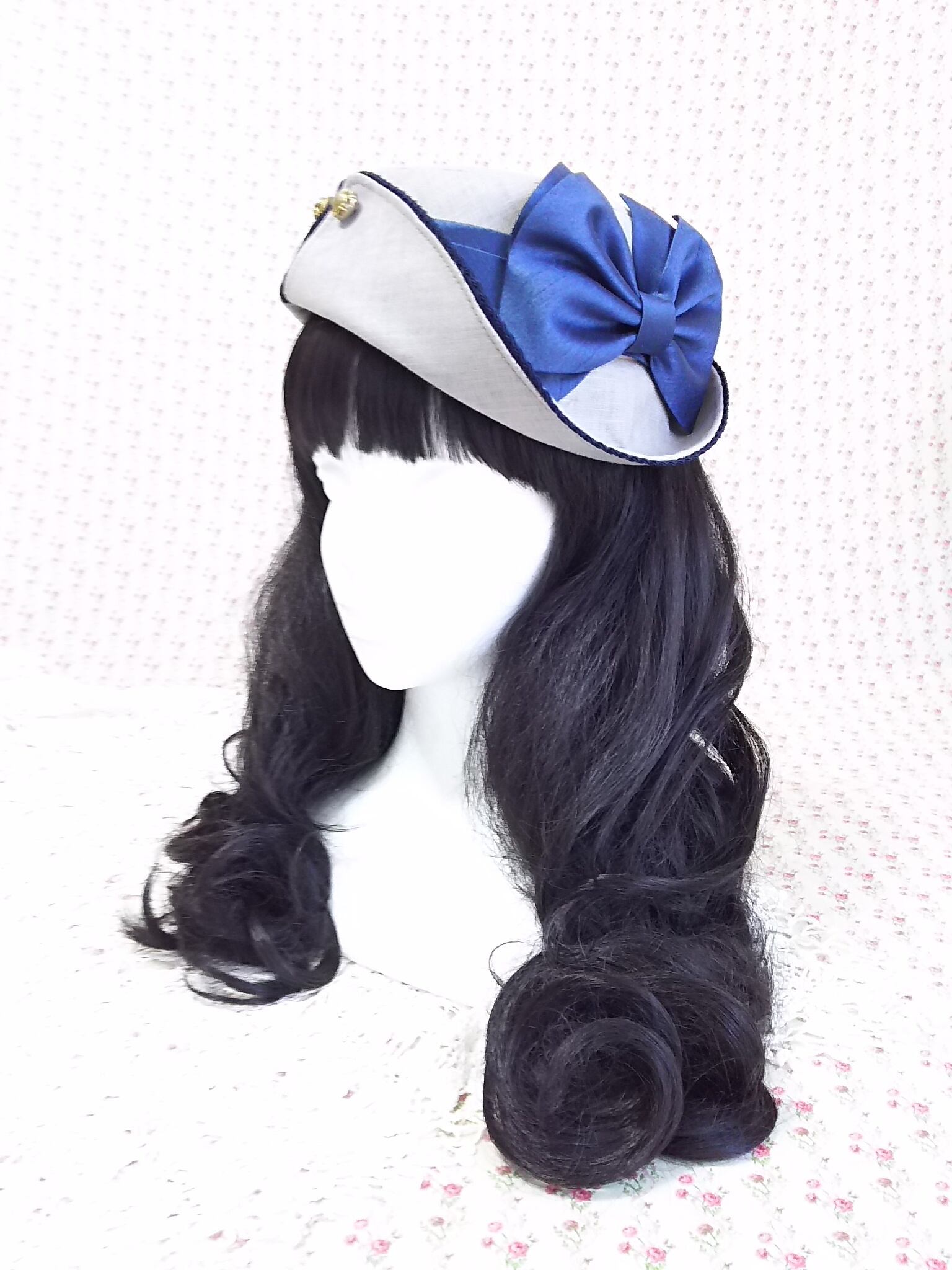 クロシェ型の帽子のブリムを折り返し、ヴィンテージのガラスボタンで飾った個性的な形の帽子です。見る方向によって表情が違って、モードな雰囲気です。コーディネートのスタイリッシュな仕上げにいかがでしょうか。